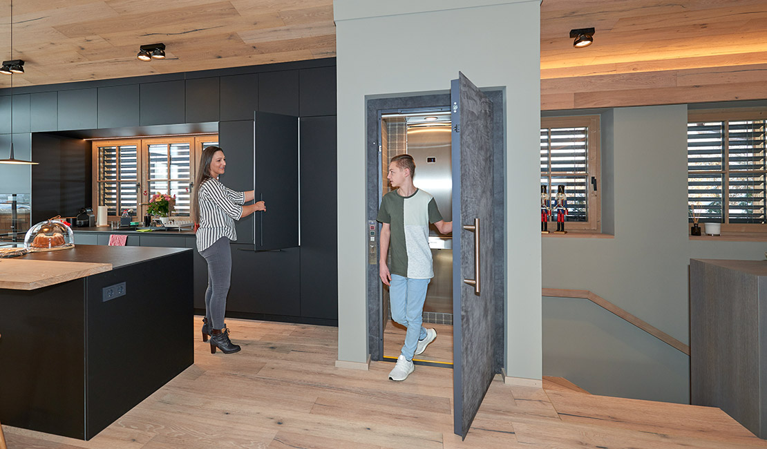 VITMAX® HOME LIFTS have an impressively small footprint, are quiet in operation and have low operating costs. In addition to the cabin version with light grid protection, we also offer the VITMAX® home lift with automatic telescopic sliding doors or folding doors.